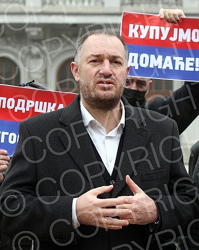 Dveri Vice President Ivan Kostic and Milovan Jakovljevic held a press conference on "Emergency measures to save the Serbian economy and agriculture" in front of the Ministry of Economy building.