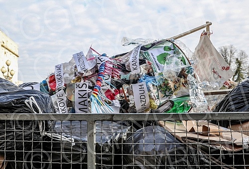 A Christmas tree decorated in front of the City assembly by activists of the One in five million movement, the let's defend Kosutnjak initiative, the New party and the Green party in the action "Decorating the Christmas tree with garbage" was removed