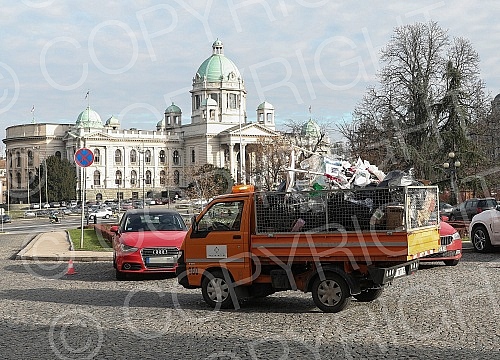 A Christmas tree decorated in front of the City assembly by activists of the One in five million movement, the let's defend Kosutnjak initiative, the New party and the Green party in the action "Decorating the Christmas tree with garbage" was removed