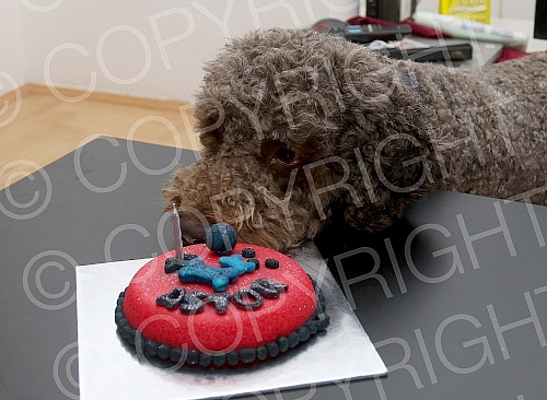 Lagotto romagnolo celebrates his birthday. Lagotto romagnolo proslavlja rodjendan