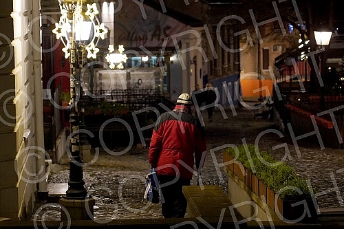 Empty Skadarlija, famous bohemian quarter in the heart of Belgrade, due to canceled New Year's Eve