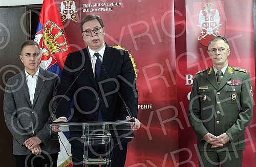 At the Topcider Guard House, Serbian President Aleksandar Vucic, Defense Minister Nebojsa Stefanovic and Chief of General Staff Milan Mojsilovic attended a presentation on the results of the analysis of the state of functional and operational capabil