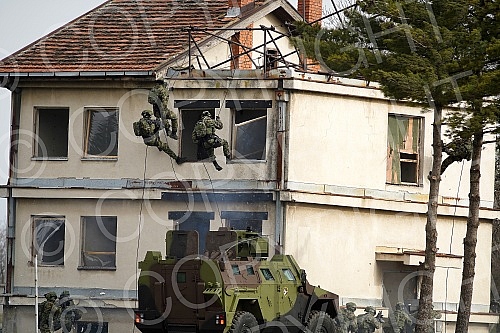 he President of the Republic and supreme commander of the Serbian army, Aleksandar Vucic, attended a demonstration of the capabilities of members of the Serbian army's 72nd special operations brigade, 63rd parachute brigade and part of the air force