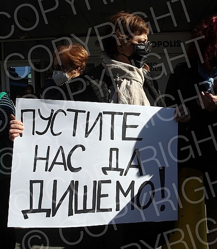 Citizens in front of the Youth center are protesting against the polluted air. Gradjani ispred Doma omladine protestvuju protiv zaadjenog vazduha.