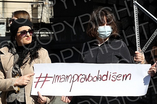 Citizens in front of the Youth center are protesting against the polluted air. Gradjani ispred Doma omladine protestvuju protiv zaadjenog vazduha.