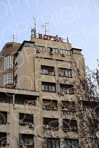 View from Nikola Pasic Square towards the buildings of the National Assembly and the Post of Serbia.