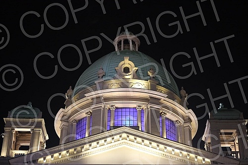 Exterior of the House of the National Assembly of Serbia located on Nikola Pasic Square in downtown Belgrade capital of the Republic of Serbia.
