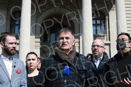 A press conference was held in front of the National assembly house, organized by the Social democratic party, the New party, the Civic democratic forum, the Hungarian movement, the Movement 1 out of 5 million, the Vlaska party, KLIP, New serbia, the