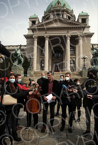 In front of the House of the National Assembly, the Independent Journalists' Association of Vojvodina, the Independent Association of Journalists of Serbia, the Media Association, the Online Media Association and the Business Association of the Assoc