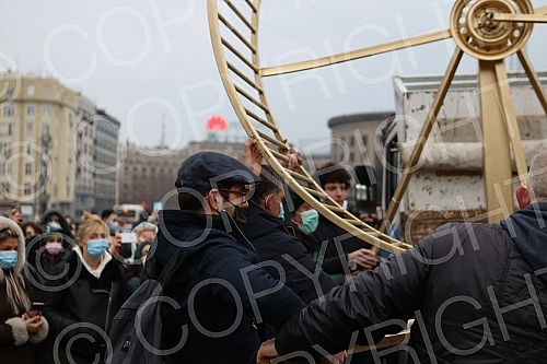 Street artist and architect Andrej Josifovski, better known as the Pianist, set up a new, unusual installation in front of the National Assembly of Serbia as part of the "Awakening of Nature - Awakening of Consciousness" project.