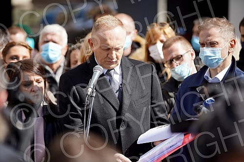 The President of the Party of freedom and justice, Dragan Djlas, held a press conference in front of the First basic public prosecutor's office. Predsednik Stranke slobode i pravde Dragan Djlas odrzao je konferenciju za novinare ispred Prvog osnovno
