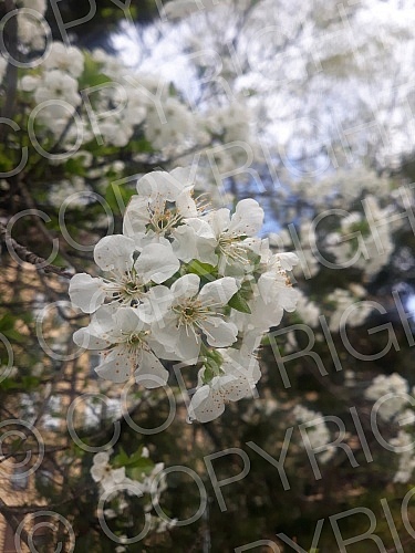 Blossoming trees and snow in April. Procvetalo drvece i sneg u aprilu.