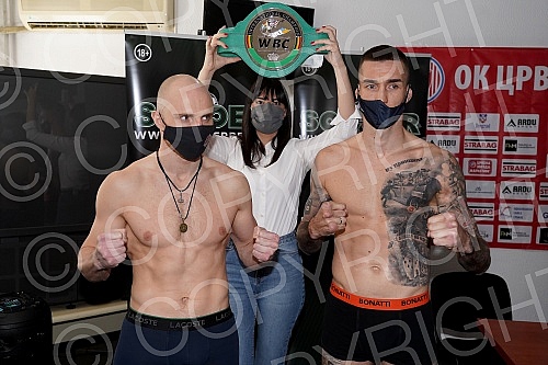 Measurement of boxers in the premises of the Red Star Sports Association before the match at the "WBC International Silver Championship" tournament for the title of champion in the WBC version. Merenje boksera u prostorijama Sportskog drustva Crvena