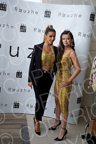 A presentation of the "Rouzhe" brand was held in the SkyLounge bar of the Hilton hotel, behind which stand Milica Pavlovic and Biljana Tipsarevic. U SkyLounge baru hotela Hilton odrzana je prezentacija brenda "Rouzhe" iza koje stoje Milica Pavlovic