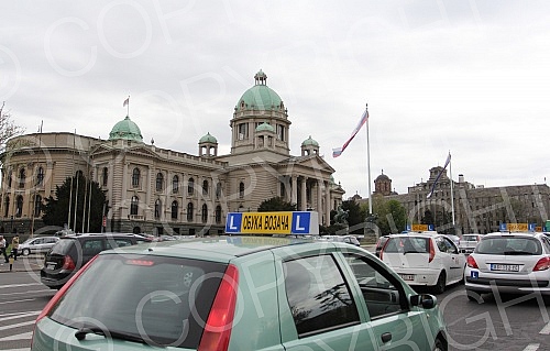 Predstavnici autoskola iz cele Srbije odrzali su protestnu voznju u Beogradu zbog novog Zakon o bezbednosti saobracaja.
