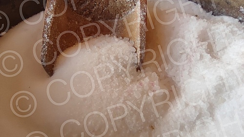 Wooden bowl with salt and spoon in it. So i kasika u drvenoj ciniji.