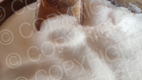 Wooden bowl with salt and spoon in it. So i kasika u drvenoj ciniji.