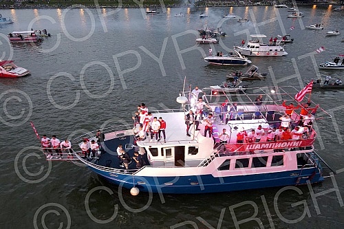 Spectacular celebration of the 32nd title of Serbian champion, fans and football players of FC Red Star from a bird's eye view.