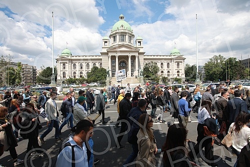The protest of lawyers who oppose the draft law on civil procedure began with a gathering in front of the Serbian Bar Association, and then they went on a protest walk next to the National Assembly to the Ministry of Justice.