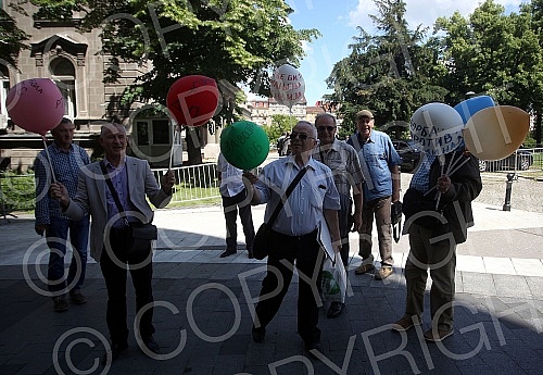 The performance "We give them vitamins, they respect the Constitution and the law" in front of the building of the Presidency of Serbia was organized by the Association of Trade Unions of Retired Military Personnel of Serbia.