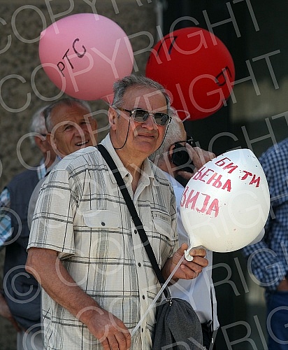 The performance "We give them vitamins, they respect the Constitution and the law" in front of the building of the Presidency of Serbia was organized by the Association of Trade Unions of Retired Military Personnel of Serbia.