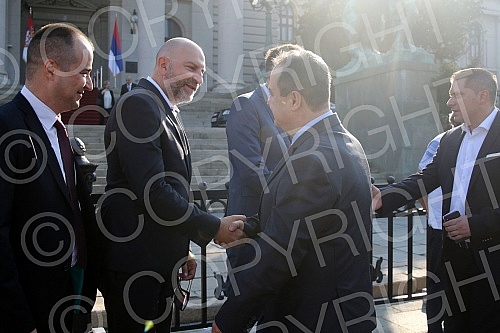 Ispred zgrade parlamenta obavljena je primopredaja dela skupstinske ograde dopremljene iz Severne Makedonije.