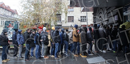 Navijaci Kosarkaskog kluba Crvena zvezda Telekom stoje u redu za kupovinu karata za utakmicu KK Crvena zvezda - Real Madrid koja je na programu u petak (27. 11. 2015) od 20,00 casova.