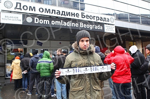 Navijaci Kosarkaskog kluba Crvena zvezda Telekom stoje u redu za kupovinu karata za utakmicu KK Crvena zvezda - Real Madrid koja je na programu u petak (27. 11. 2015) od 20,00 casova.