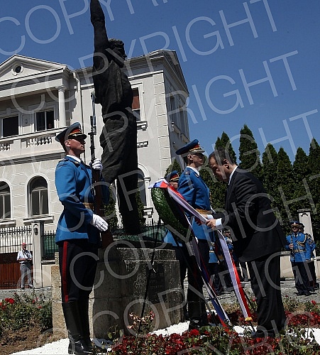 Povodom obelezavanja Dana borca, polaganje venaca na spomenik "Poziv na ustanak" (kuca Ribnikara).