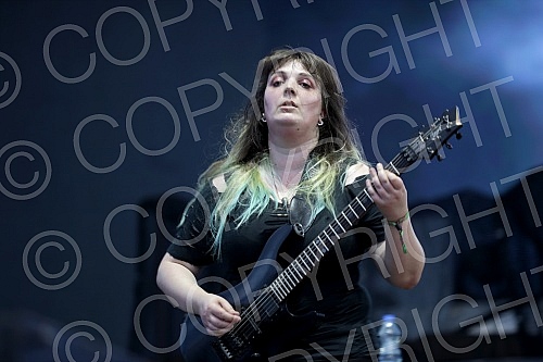 Performance of the Serbian all female death metal band Nemesis on the second day of the Exit Festival 2021 on the Main Stage.