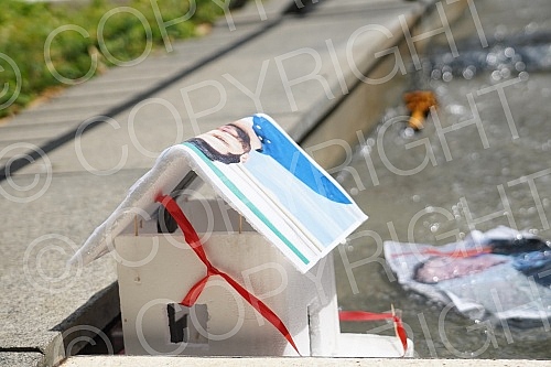 In front of the fountain on Andricev venac, a performance by organizations gathered around the "Ecological Uprising", entitled "The launch of the new Law on Waters Down the Water".