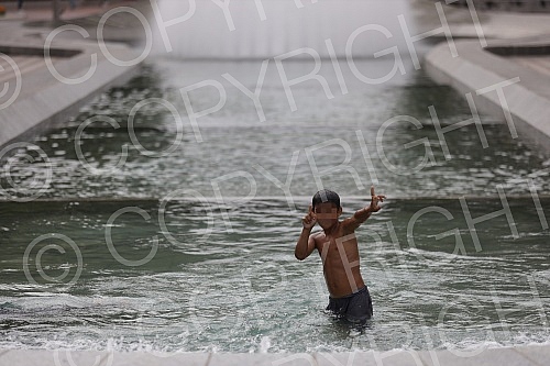 The children sought refreshment in the fountain on Nikola Pasic Square during hot July day. Deca su potrazila osvezenje u fontani na Trgu Nikole Pasica tokom vrelog julskog dana