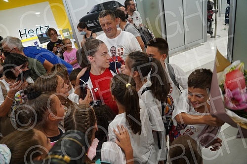 Karate player Jovana Prekovic, who won a gold medal and a gold water polo team of Serbia at the Olympic Games in Tokyo, arrived in Serbia and on that occasion a press conference was held at the Nikola Tesla Airport. Karatiskinja Jovana Prekovic koja