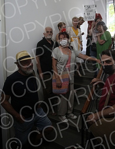 Protest action of the Association of Fine Artists of Serbia in front of the apartment of the painter and retired professor Dragana Milisavljevic, which the perpetrators tried to forcibly evict.