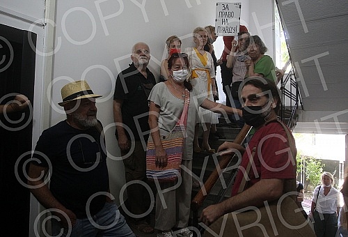 Protest action of the Association of Fine Artists of Serbia in front of the apartment of the painter and retired professor Dragana Milisavljevic, which the perpetrators tried to forcibly evict.