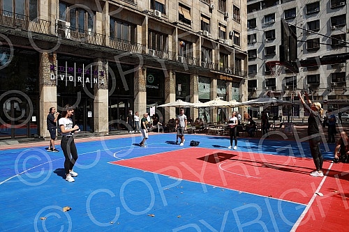 The humanitarian action "FOR ALL CHILDREN TO JUMP" was held in front of Kombank Hall, on Nikola Pasic Square, where a 3x3 basketball court was set up where Natasa Kovacevic and her friends, including actor Milan Kalinic, and with the help of passers-