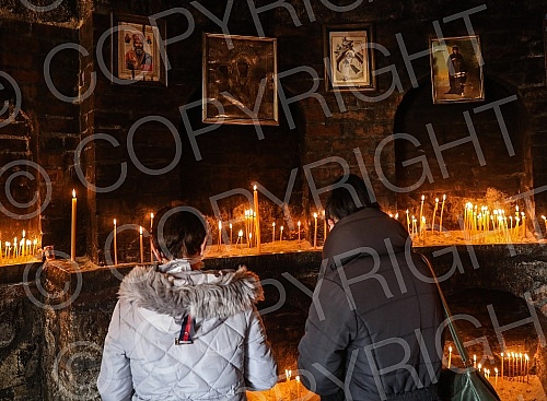 Orthodox believers in front of and in the Church of St. Petka on Kalemegdan on the occasion of the baptism of St. Petka.