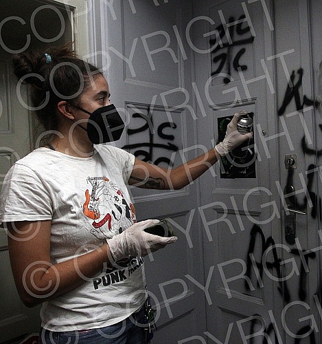 In the premises of Women in Black, a joint cleaning of hate graffiti was organized by representatives of several civil society organizations.