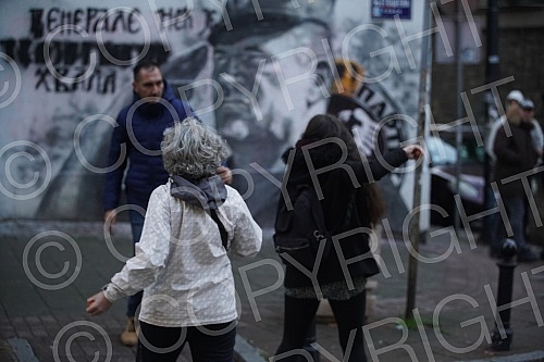 Activists Aida Corovic and Jelena Jacimovic Jachim threw eggs at a mural by Ratko Mladic, painted on the corner of Njegoseva and Aleksa Nenadovic. Aktivistkinje Aida Corovic i Jelena Jacimovic Jachim gadjale su jajima mural Ratka Mladica, koji je os