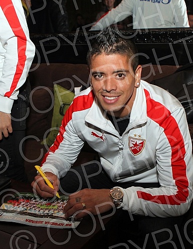 Druzenje prvotimaca Fudbalskog kluba Crvena zvezda Hugo Oliveira (Hugo Filipe Oliveira) i Luis Ibanjez (Luis Ezequiel Ibanez) sa navijacima u centru Beograda.