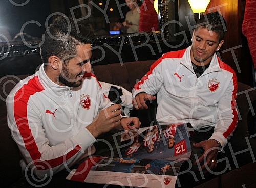 Druzenje prvotimaca Fudbalskog kluba Crvena zvezda Hugo Oliveira (Hugo Filipe Oliveira) i Luis Ibanjez (Luis Ezequiel Ibanez) sa navijacima u centru Beograda.