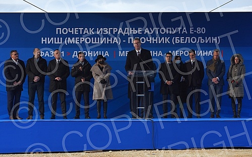 The President of the Republic of Serbia, Aleksandar Vucic, attended the ceremony marking the beginning of works on the construction of the highway E-80 Nis (Merosina) - Plocnik (Beloljin), phase 1, section Merosina-Merosina 1.