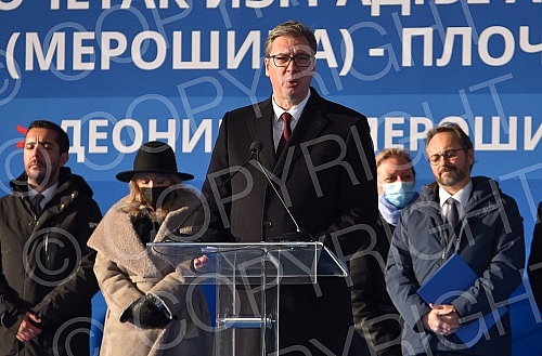 The President of the Republic of Serbia, Aleksandar Vucic, attended the ceremony marking the beginning of works on the construction of the highway E-80 Nis (Merosina) - Plocnik (Beloljin), phase 1, section Merosina-Merosina 1.