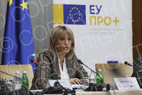 Minister for European Integration Jadranka Joksimovic and Head of the European Union Delegation to Serbia Emanuele Giaufret attended a meeting of the Steering Board of the EU Local Development Program - EU PRO Plus at the Palace of Serbia, and after