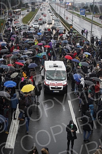 Blockade of traffic on the highway near the Sava Center with a request to ban the work of Rio Tinto in Serbia. Blokada saobracaja na auto-putua kod Sava centra sa zahtevom za zabranu rada Rio Tinta u Srbiji.