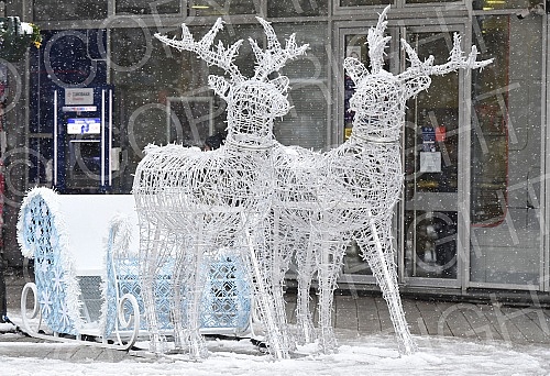 Reindeers and sledges - New Year's decoration in the city center of Novi Sad. Irvasi i sanke - novogodisnja dekoracija a u centru Novog Sada.