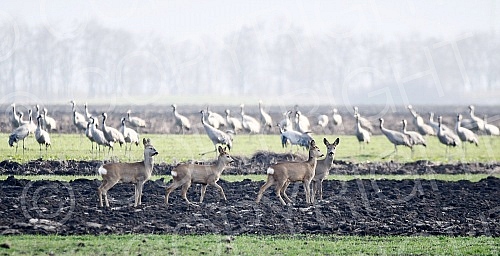Roe deers and cranes in the atari of Novi Becej. Srne i zdralovi u atarima Novog Beceja