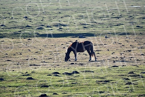 A horse grazing in Koviljski rit. Konj na ispasi u Koviljskom ritu.