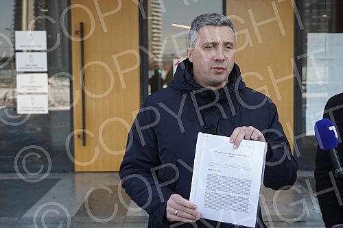 The president of the Serbian movement Dveri, Bosko Obradovic, held a press conference in front of the Second Basic Public Prosecutor's Office, on the occasion of filing criminal charges for theft in a referendum. Predsednik Srpskog pokreta Dveri Bos