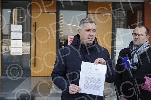 The president of the Serbian movement Dveri, Bosko Obradovic, held a press conference in front of the Second Basic Public Prosecutor's Office, on the occasion of filing criminal charges for theft in a referendum. Predsednik Srpskog pokreta Dveri Bos